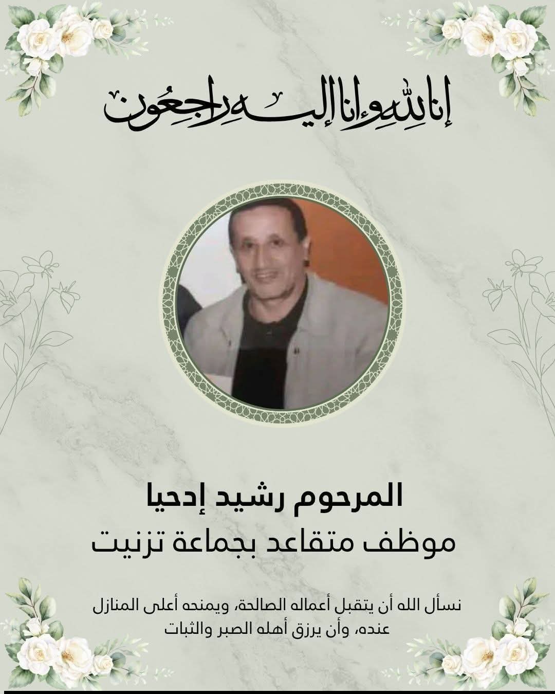 أسرة المرحوم رشيد أديحيى تعبّر عن شكرها وامتنانها لكل من واساها في مصابها الجلل