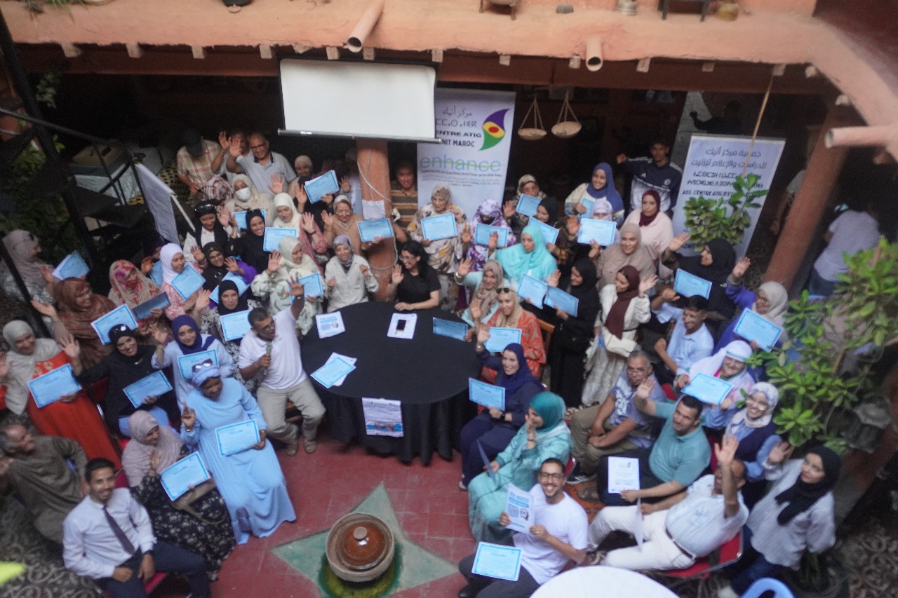وهذا اليوم الدراسيً الغني بفقرات ومواد تكوينية حول المشروع “ENHANCE ” وكذلك فقرات متنوعة في ميادين التخطيط و التدبير المالي والتسير الاداري والتنظيم الداخلي و تمويل المشاريع ، لفائدة التعاونيات والجمعيات النسائية العاملة في مجالات مختلفة لقطاعات الاقتصاد الاجتماعي والتضامني .