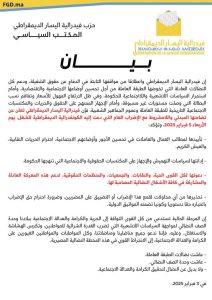 فيدرالية اليسار الديمقراطي تعلن عن دعمها لنضالات الطبقة العاملة وتدين سياسات التهميش والإجهاز على المكتسبات الحقوقية والاجتماعية للحكومة.