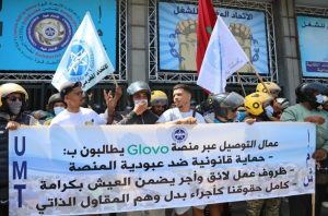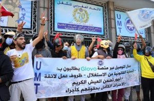 مستخدمي وعمال “گلوڤوGLOVO”يحتجون على حرمانهم من العمل النقابي وغياب أدنى الحقوق المشروعة(بيان).