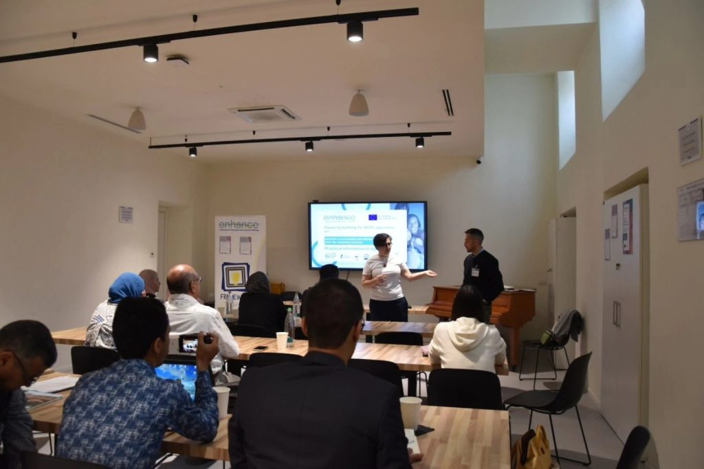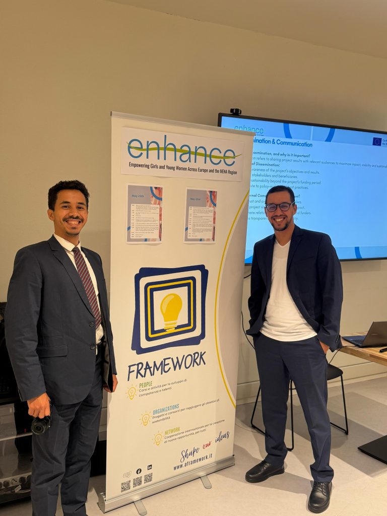 وفي اليوم الاول كان مناسبة لتقديم كل المشاركين و المشاركات في البرنامج اي في مشرو Enhance إلى جانب تقديم عروض مفصلة حول البرنامج والجدولة الزمنية من قبل رئيسة منظمة framework فاليريا واعضاء من اطر هذه الأخيرة من اجل تبادل الخبرات بين ممثلي الدول المشاركة، والتي شملت جمعيات من الدول العربية الاردن ومصر بالإظافة الى المغرب و كذلك الدول الاوروبية كممثلي مقدونيا الشمالية، إلى جانب إيطاليا البلد المنظم وممثلة منظمة RJ4all من قبرص .